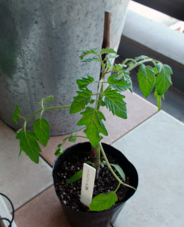 ミニトマトの『千果』もひとまわり大きなポットへ。